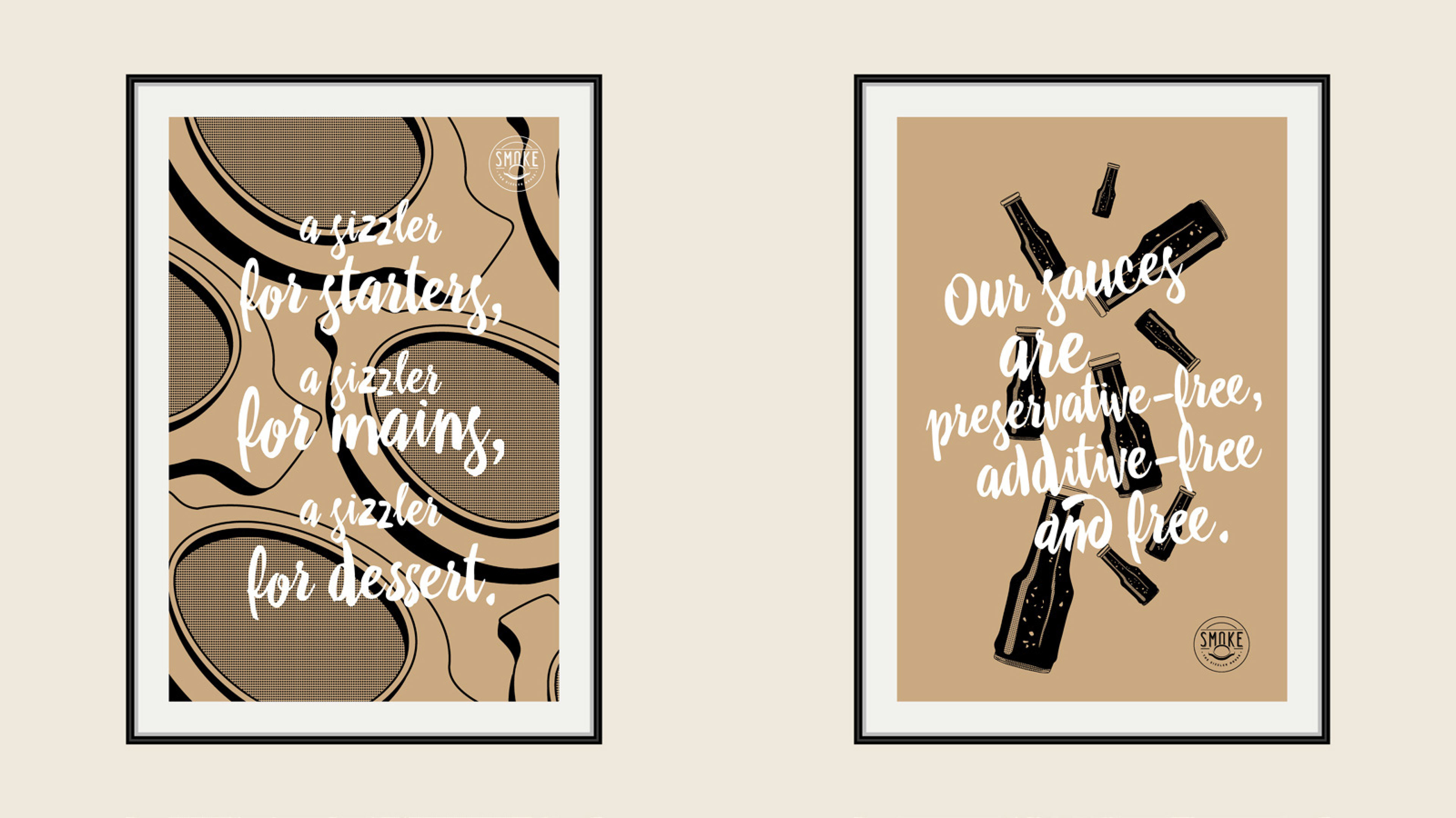 The name and the brand identity for the restaurant chain, based in Bangalore. The inspiration for the design came from the fact that everything on the menu was served on a sizzling plate.